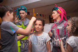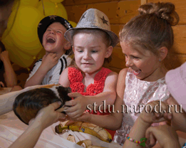 столом, привыкают к обстановке в помещении. Где-то здесь снимает видеооператор видеокамерой на видео. Застолье праздника постепенно начинается и кто-то из детей произносит первое детское поздравление. В это время, незаметно для всех, готовятся аниматоры в костюмах сказочных героев, персонажей из мультфильмов.
